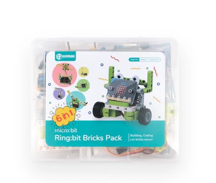 The 6-in-1 Ring:bit Kit introduces students to servo motors, mechanical outputs, and creative engineering with the BBC micro:bit. With two 180° servos and over 200 LEGO®-compatible building blocks, students learn how code can control movement and light, turning simple instructions into real, working models.