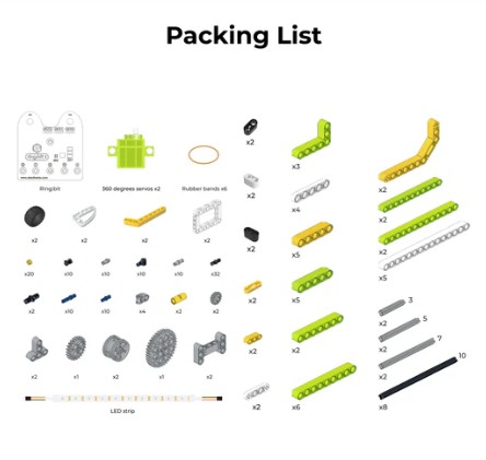 The kit includes six exciting guided projects – traffic light, smart desk lamp, fan, windshield wiper, trebuchet, and brick car, giving learners a structured path to start exploring. But the creativity does not stop there: with hundreds of versatile pieces and the Ring:bit expansion board for easy plug-and-play connections, students can go beyond the guided activities and design their own custom creations.